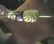 This will be a max size of about an inch and a half long, about 1/8th inch hole through. You pick the colors, (I've got a decent selection of colors, but not an infinity. I'll let you know if I don't have a color.), and give me an idea of what kind of pattern you want, and I make you a bead. The image is an actual pic of my work. If you're local to my area, I can bring it to you, or we can meet somewhere.